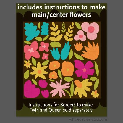 If you would like to make a Twin or Queen size quilt, the Wildflower Remix Add-On Border Pattern is required (sold separately for $16.95). It is available for immediate download after purchase, so if you wish, you can get started on your borders right away!