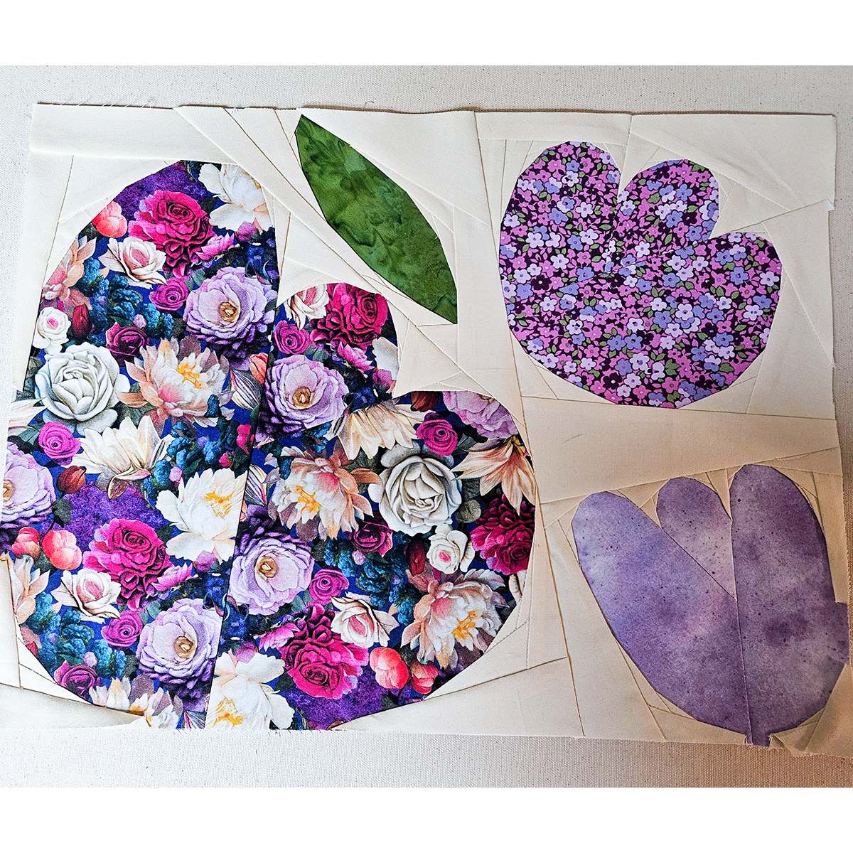 Modern Wildflower Remix FPP quilt block made by Wilma Louse R. in bright floral fabrics — foundation paper pieced flower block from the Wildflower Remix BOM quilt pattern, perfect for modern quilt lovers and block-by-block sew-along inspiration.