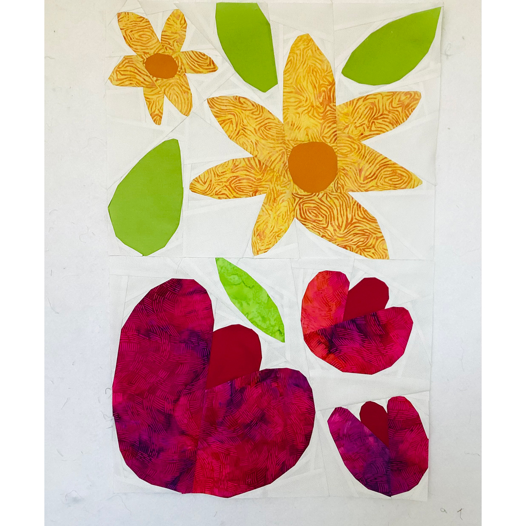 bold and modern flower quilt blocks on a white background